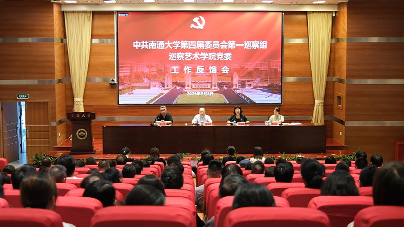 李清湘反馈巡察情况,指出近年来艺术学院党委坚持以习近平新时代中国特色社会主义思想为指导,在专业建设、人才培养、服务地方等方面成效显著,“中国美术南通现象”“炫青春”毕业展演、国际交响乐团等品牌活动取得良好社会反响。但从巡察的“四个聚焦”来看,艺术学院党委还存在一些问题,主要表现在:政治理论学习不够深入,学用结合与转化不足,高质量发展成效不够显著;全面从严治党主体责任落实不够到位,作风建设不够深入扎实;党内政治生活质量不够,对基层党支部工作的指导不够,党员日常教育管理存在不足;上一轮校党委巡察整改落实不到位等。