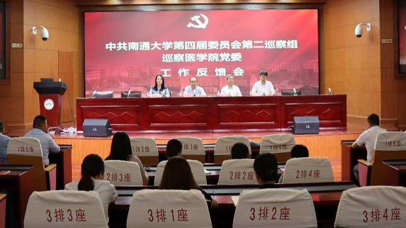 徐骏反馈巡察情况,指出近年来医学院党委以习近平新时代中国特色社会主义思想为指导,在党的建设、人才培养、教学科研、学科建设等方面取得了一定成效。但从巡察的“四个聚焦”来看,医学院党委还存在一些问题,主要表现在:对党的创新理论深学笃用不够,高质量发展实际成效与学院应有的“首位度”有差距,践行“以学生为中心”的人才培养理念有差距,师资队伍建设存在薄弱环节,有组织科研成效不足,安全教育管理存在薄弱环节,组织建设及其功能发挥未达到预期,整改落实成效不够显著等。