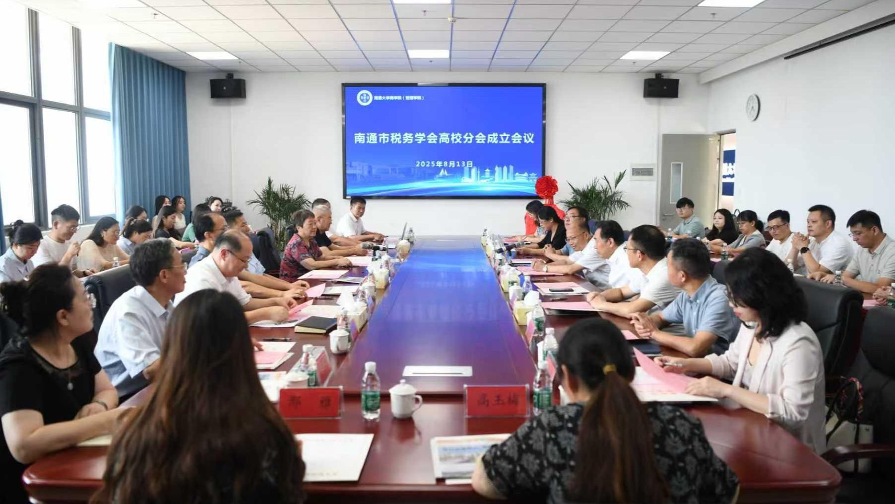 8月13日下午,南通市税务学会高校分会成立大会在mg冰球官网召开。校党委书记杨宇民与江苏省人大预算委员会副主任、江苏省税务学会会长汤志水为“南通市税务学会高校分会”揭牌。校党委常委、副校长吉明明与江苏省税务学会副会长陈茂锋为mg冰球突破试玩联合培养基地授牌。南通市政府原副市长、市政协原副主席单晓鸣,江苏省税务学会秘书长谢燕铭,南通市税务局党委书记、局长朱永剑,南通市税务学会会长佘元原等出席会议。