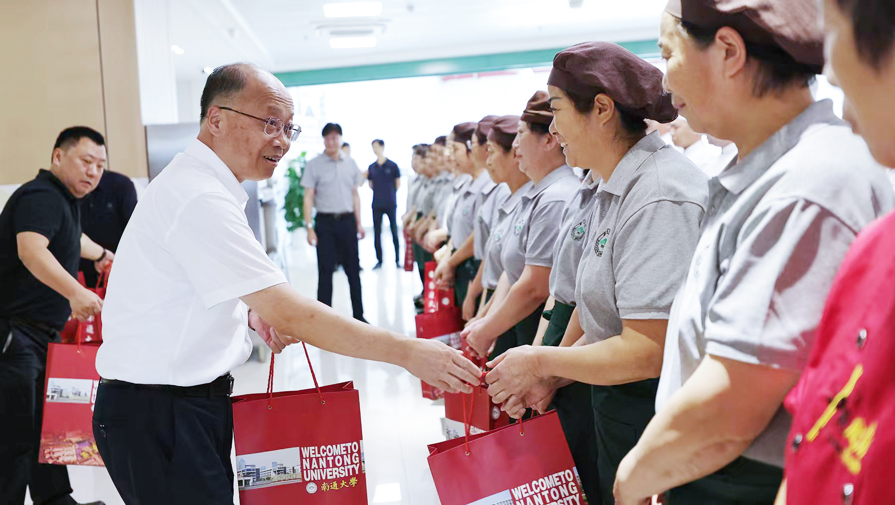 8月15日,校党委书记杨宇民、党委副书记王卫东看望慰问暑期校园工程项目建设人员、后勤保障人员,调研各工程项目推进情况。校党委常委、统战部部长、保卫部部长朱城陪同慰问。