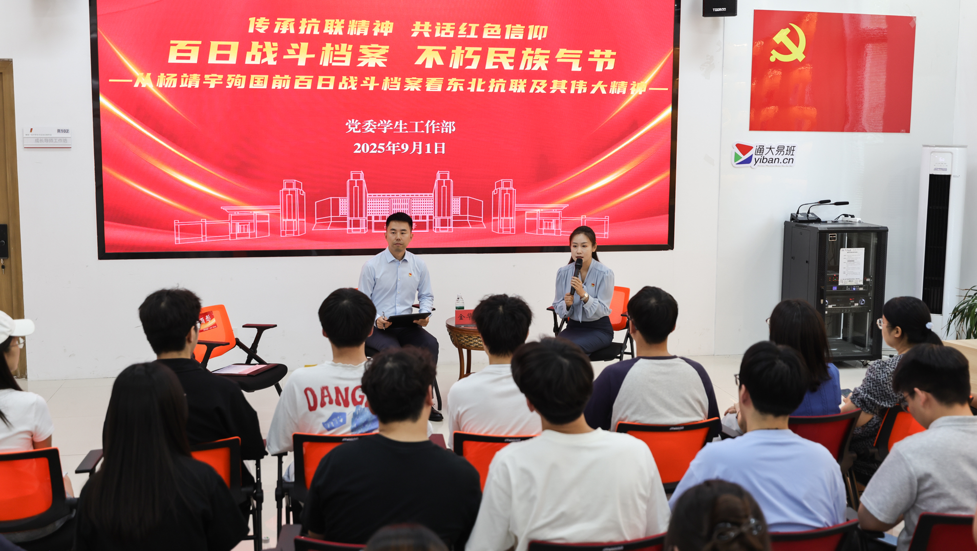 9月1日,一堂题为《百日战斗档案 不朽民族气节——从杨靖宇殉国前百日战斗档案看东北抗联及其伟大精神》的沉浸式红色情景党课在mg冰球官网艺术中心剧场举行。在人工智能成像技术的辅助下,一场和杨靖宇将军穿越时空的对话,令大家深受触动。全体在通校领导、党委常委与师生们一同回顾了东北抗联历史,缅怀抗日民族英雄杨靖宇将军,深刻感悟东北抗联精神,汲取磅礴奋进力量。校党委副书记王卫东主持党课。