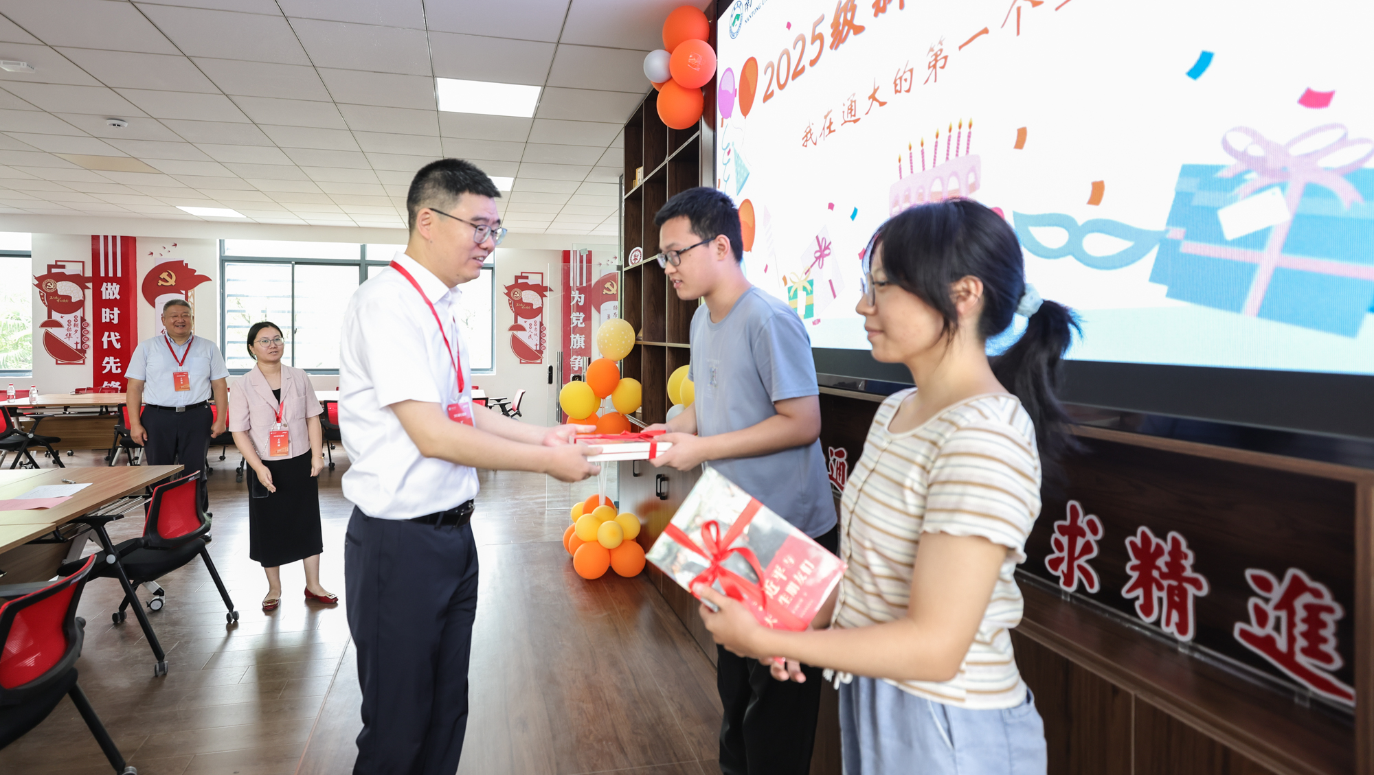 在啬园校区、启秀校区“一站式”学生社区和启东校区物业服务大厅,校领导与新生代表座谈交流,询问他们来校适应情况,听取他们对大学学习生活的期待、对未来发展的憧憬,并向他们送去祝福。报到期间有37位新生过生日,校领导为当天过生日的新生代表送上生日蛋糕和书籍,和他们一起吹蜡烛、唱生日歌。校领导还走进学生宿舍,与新生及其家长亲切交谈。新生们纷纷分享来校报到的感受,感谢学校提供的温暖和关爱,表示一定珍惜大学时光,努力学习知识、提高本领,将来早日成才。