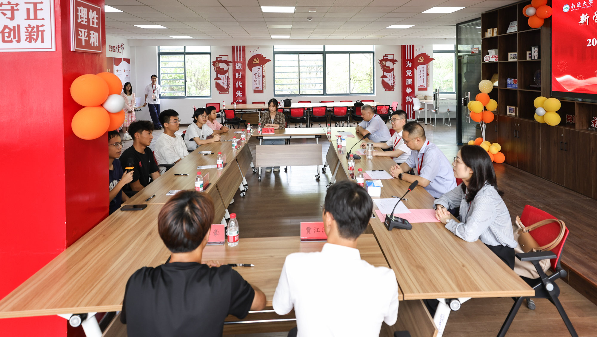 报到期间,各学院结合专业特点,在办公区域营造特色迎新氛围,设置迎新服务点与遮阳休息区,提供免费饮水及防暑物资。历史文化学院(法学院)在迎新点设置“签名树”和“打卡墙”供新生定格初遇瞬间,并安排“通关文牒”集章游戏引导学生探索校园;物理科学与技术学院开辟新生许愿墙供学生表达对大学生活的期许与憧憬,并发放印有院训的文创好礼;马克思主义学院设立“信仰手印板”“新生打卡墙”并发放定制帆布袋,让新生快速找到归属感;医学院用新生姓名拼成带有“健康所系 性命相托”字样的姓名墙,并为“逢百位”打卡的新生赠送定制款白大褂,帮助新生尽快转换角色;交通与土木工程学院架设留影展架和巨幅欢迎墙,并送出暖心礼包;药学院搬出“药花药草”玩偶与新生互动合影,并赠送文创帆布包……为了让新生家长放松身心好好休息,启东校区还在体育馆铺上凉席,并根据所需提供床单和驱蚊花露水,尽显服务温情。