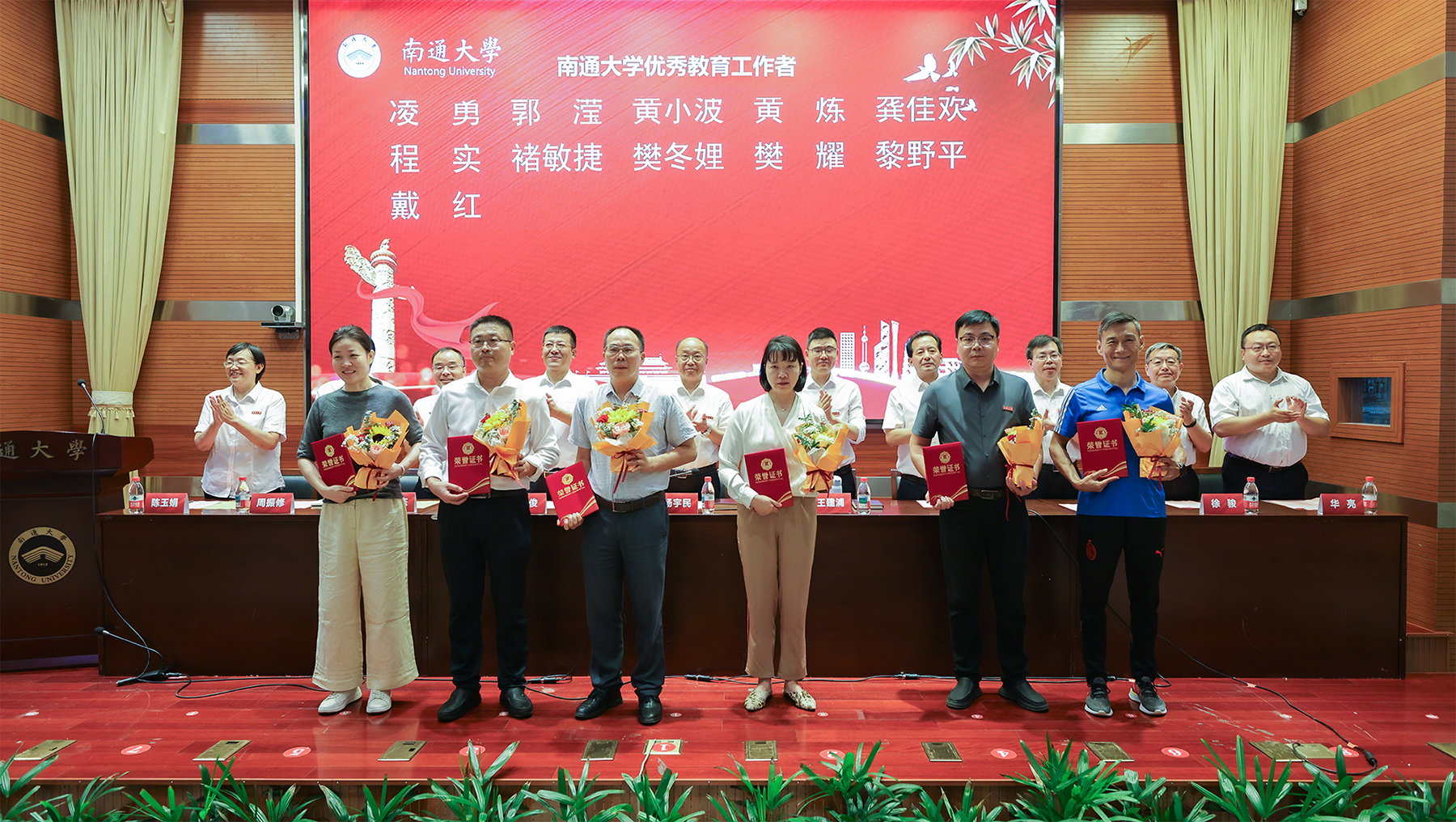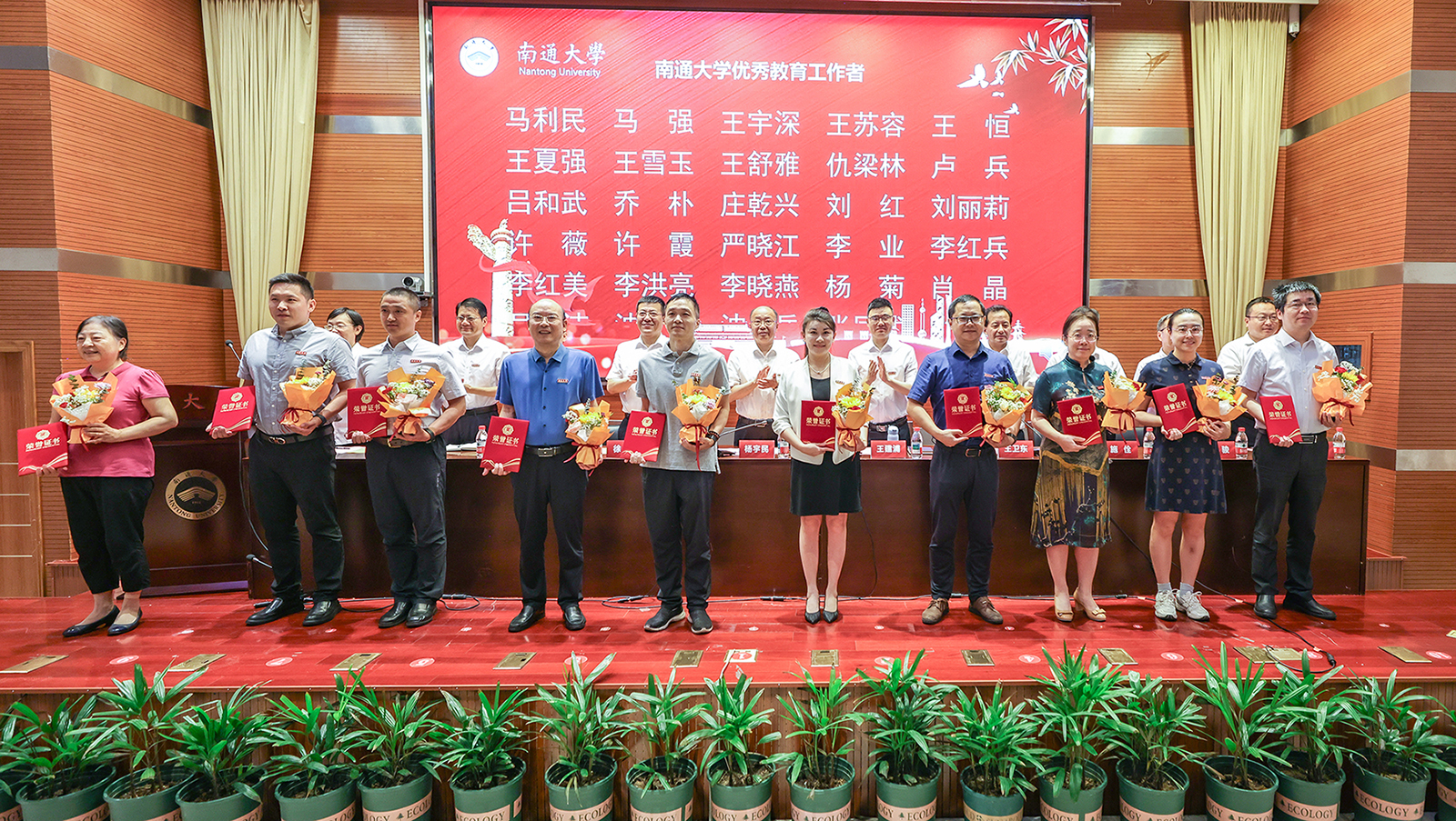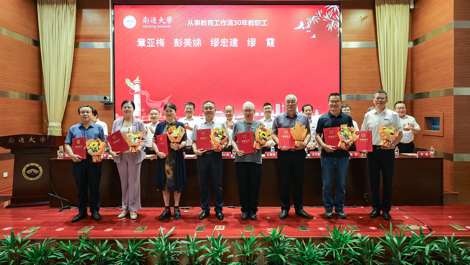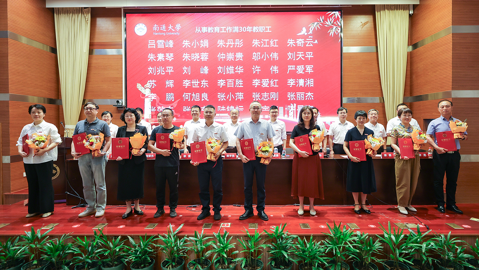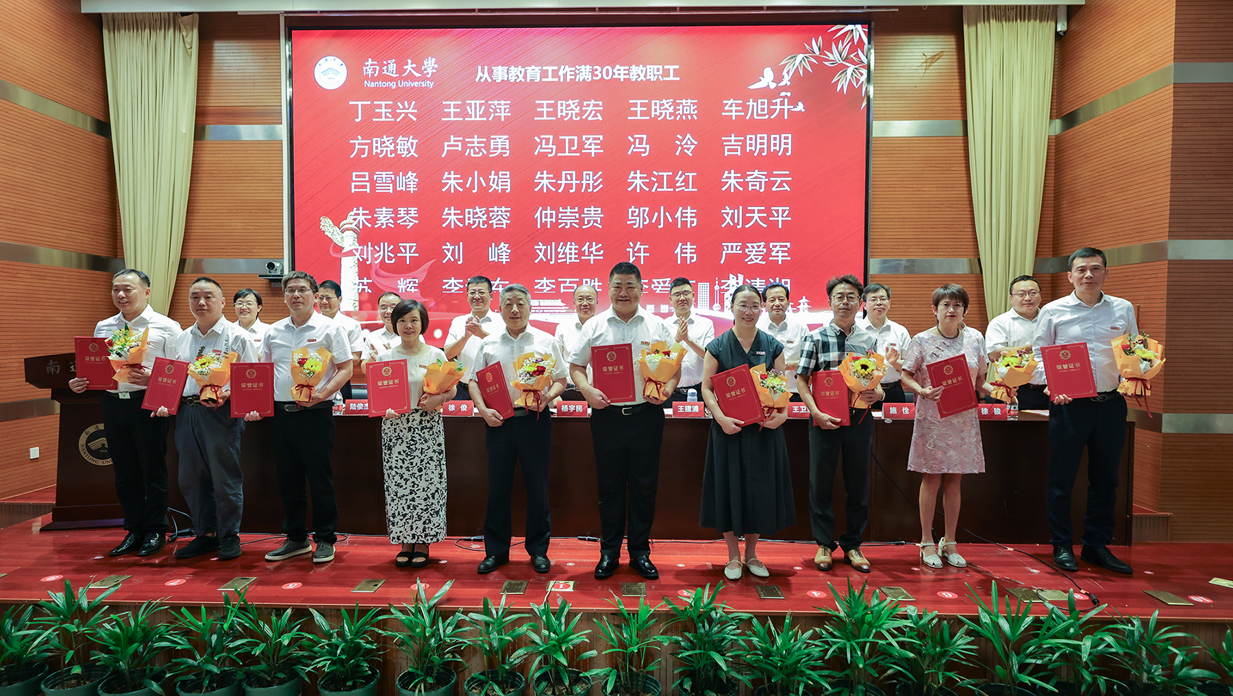 杨宇民代表学校向受到表彰的各位教师表示热烈祝贺,向从事教育工作满30年的教职工致以崇高敬意,向全校广大教职工和离退休老教师、老同志致以诚挚慰问。他指出,在学校113年的发展历程中,始终坚持把高水平师资队伍作为支撑学校发展的第一资源,高起点、高标准、高投入推进师资队伍建设。多年来,学校广大教职员工不忘立德树人初心,牢记为党育人、为国育才使命,将个人发展与学校发展、国家命运紧密相连,在教书育人一线和科学研究、社会服务前线默默奉献,在平凡的岗位上创造不平凡的业绩,充分体现了新时代通大人投身教育强国、肩负时代使命的家国情怀和人生格局。杨宇民指出,教师是办好人民满意大学的关键要素,也是实现高质量发展的核心支撑,希望广大教职工胸怀“国之大者”,以坚定信念当好学生成长的“引路人”;恪守“师德标准”,以过硬本领当好立德树人的“大先生”;勇挑时代重任,以更大作为当好事业发展的“开拓者”。他强调,要坚持把讲政治作为第一位的要求,要坚持不懈用习近平新时代中国特色社会主义思想武装头脑,坚持以“四有”好老师标准严格要求自己。要坚持以德立身、以德立学,涵养终身学习的习惯,坚持用知识传播知识,为学生成长成才源源不断提供源头活水。全校上下务必坚定跻身江苏高水平大学A类高校,加快建设特色鲜明国内一流大学的决心和信心,各个条线,每一位教职工,要自我加压,主动担难,加快找到打开工作局面的突破口。进一步加大教师队伍建设力度,继续打好政策“组合拳”,发挥制度的驱动与控制作用,切实推动惠师强师各项政策生根落地。