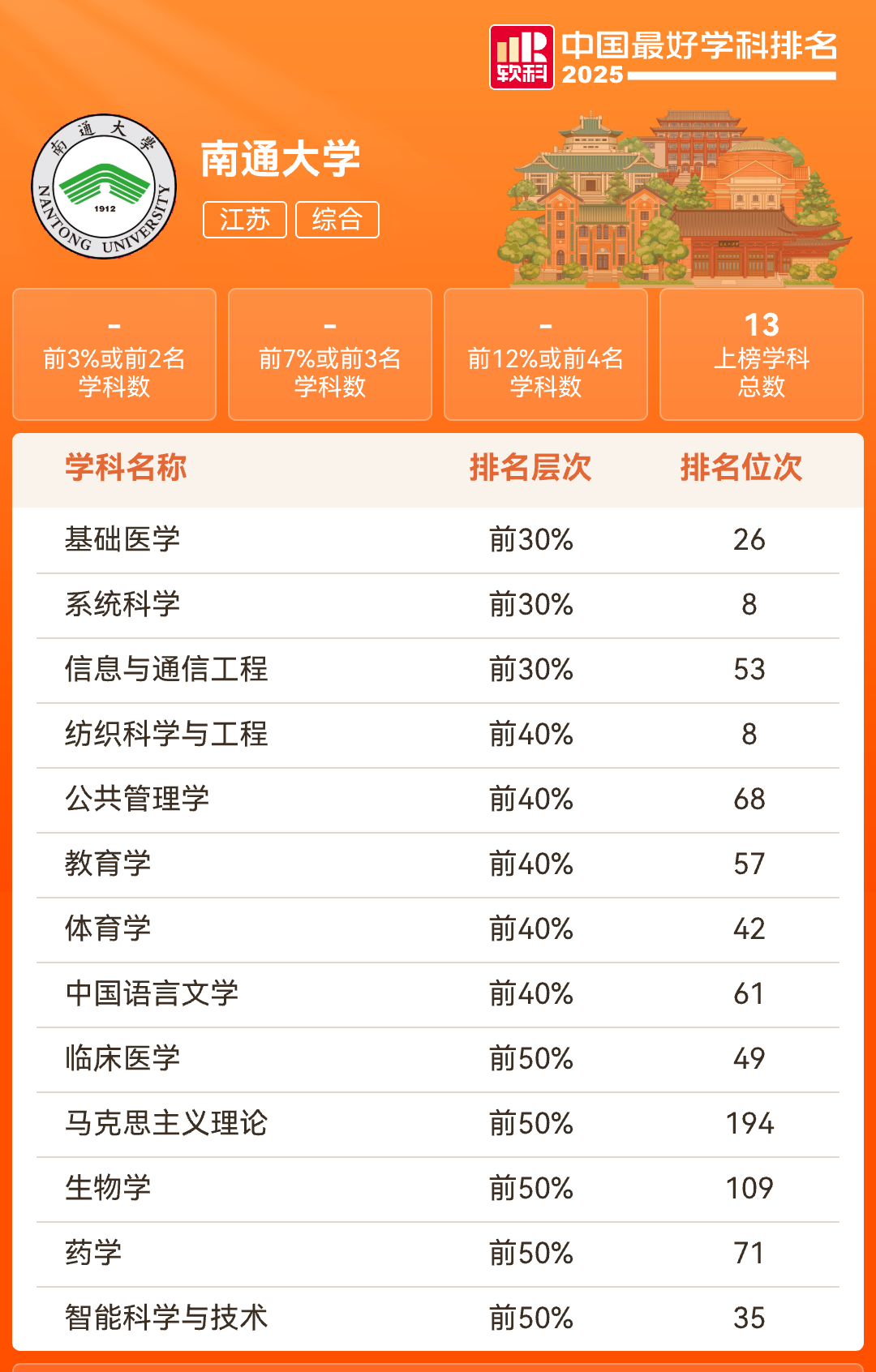 10月15日,高等教育评价机构软科发布了“2025中国最好学科排名”,mg冰球官网共有13个学科上榜,较2024年有明显提升。其中,总上榜学科数增加3个,前30%学科、前40%学科数各增加2个,系统科学、智能科学与技术首次上榜,基础医学、系统科学、信息与通信工程等3个学科位于全国同类学科前30%,纺织科学与工程、公共管理学、中国语言文学、教育学、体育学等5个学科位于全国同类学科前40%。