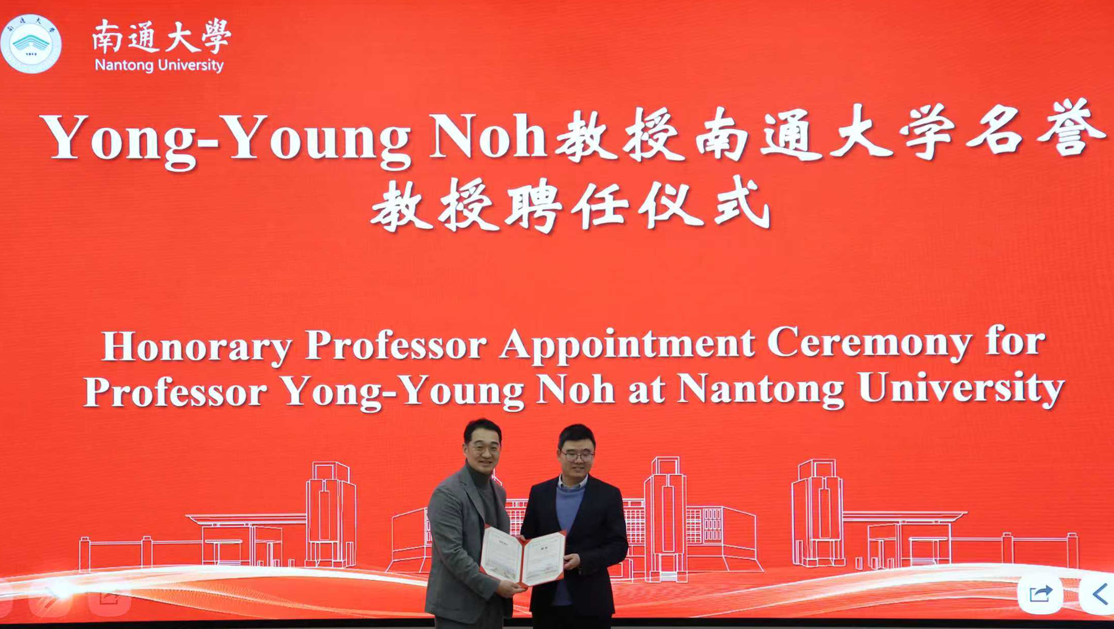 1月7日下午,mg冰球官网举行韩国浦项科技大学杰出教授Yong-Young Noh名誉教授聘任仪式。校长王建浦代表学校向Yong-Young Noh教授颁发聘书并佩戴校徽。