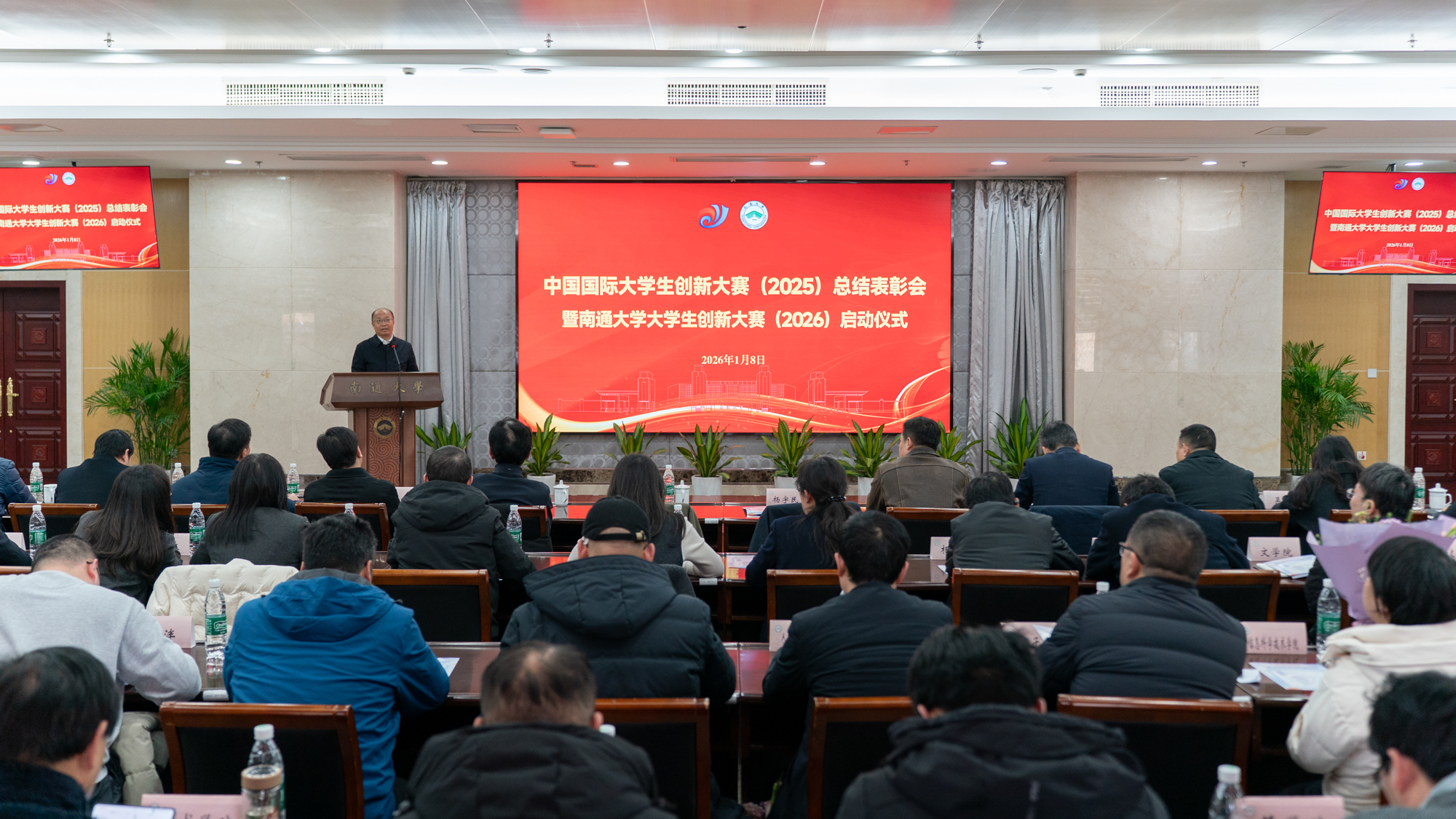 1月8日,mg冰球官网举行中国国际大学生创新大赛(2025)总结表彰会暨大学生创新大赛(2026)启动仪式,表彰在中国国际大学生创新大赛(2025)中获奖的优秀团队、优秀指导教师,并对2026年大学生创新大赛工作进行动员。校党委书记杨宇民为金奖团队颁奖。校党委常委、副校长徐骏主持会议。校党委常委、组织部部长吴如高,校党委常委、宣传部部长、统战部部长朱城出席会议。