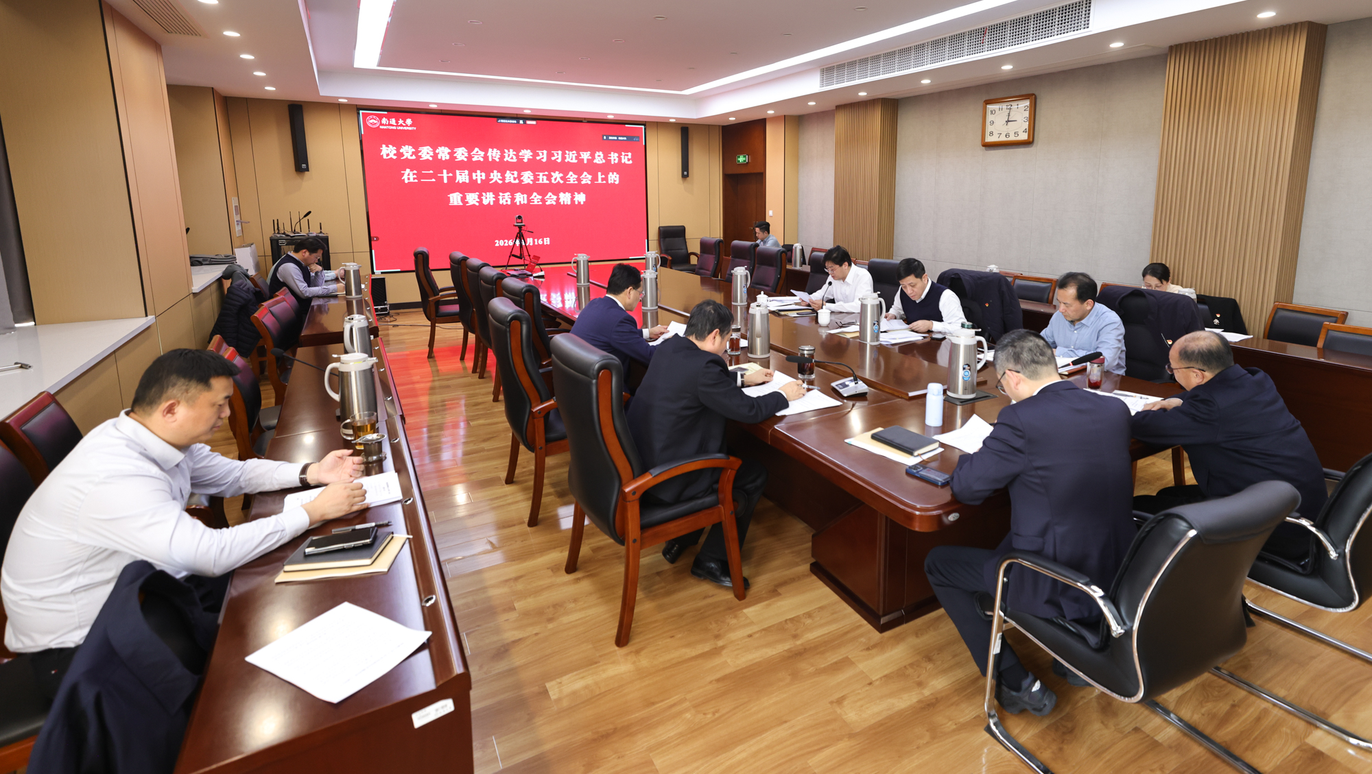 1月16日下午,校党委常委会召开会议,学习贯彻习近平总书记在二十届中央纪委五次全会上的重要讲话和全会精神。校党委书记杨宇民主持会议。全体在通校领导、党委常委出席会议。