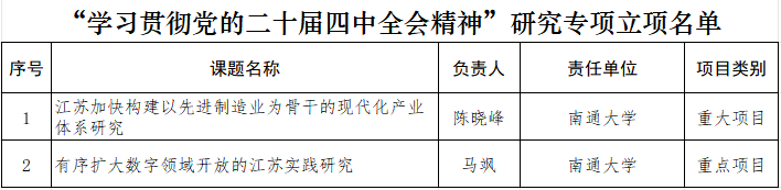 近日,江苏省哲学社会科学规划办公室公布“学习贯彻党的二十届四中全会精神”研究专项立项名单。mg冰球官网获批1项重大课题、1项重点课题。该专项申报竞争激烈,全省共立项23项,其中重大项目仅立项5项。