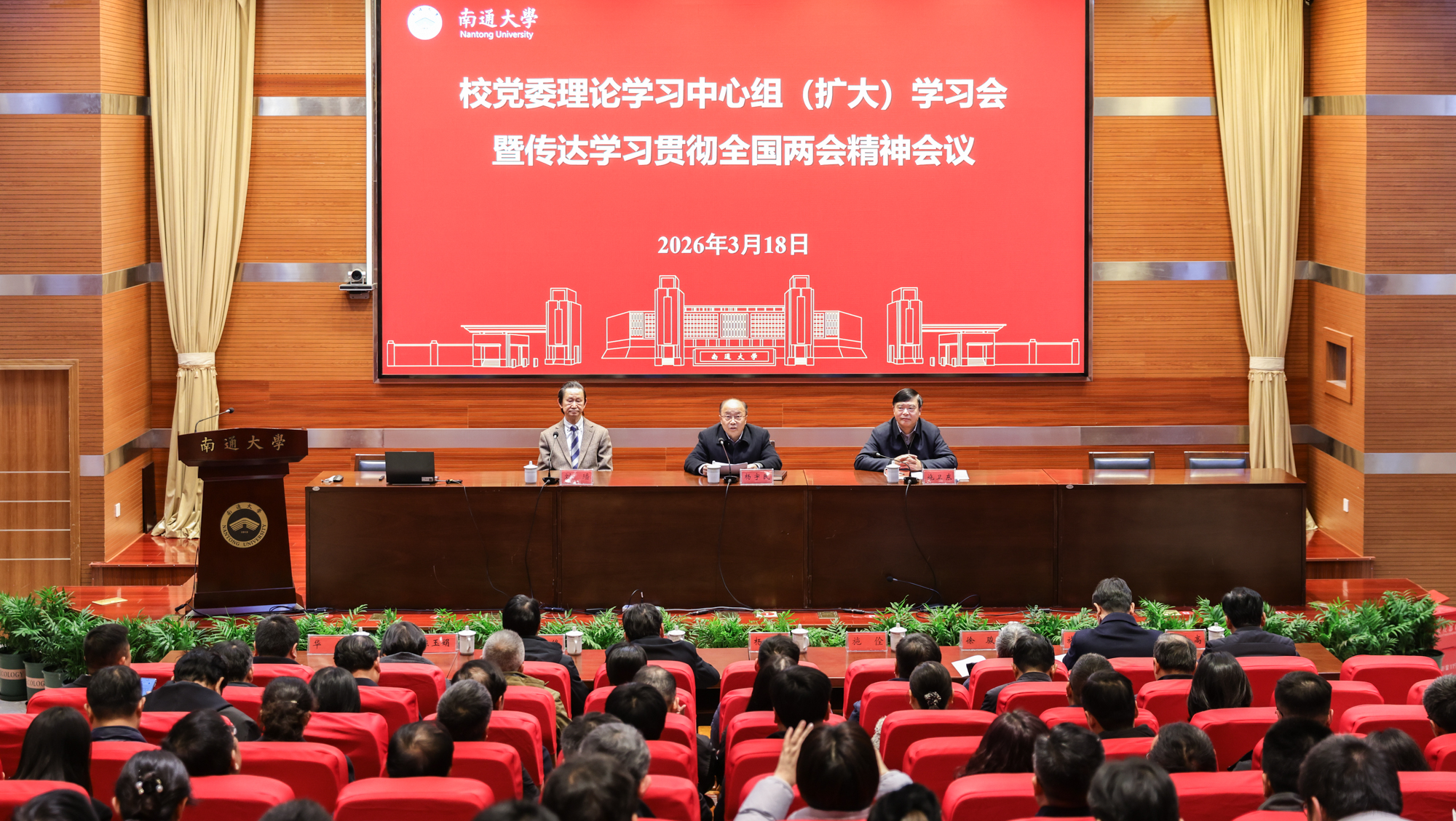 3月18日下午,mg冰球官网召开党委理论学习中心组(扩大)学习会,传达学习习近平总书记在参加十四届全国人大四次会议江苏代表团审议时的重要讲话精神和2026年全国两会精神。校党委书记杨宇民主持会议,就全校学习贯彻全国两会精神作动员部署。全国政协委员、mg冰球官网原校长施卫东教授,全国人大代表、附属医院刘璠教授受邀作专题辅导报告。全体在通校领导、党委常委出席会议。