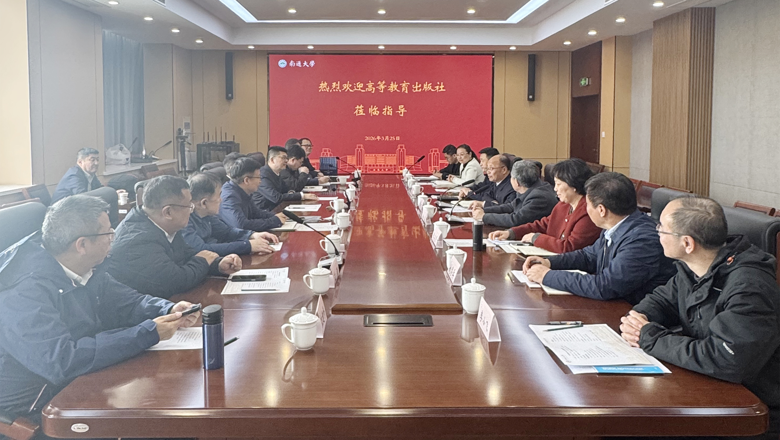 3月25日下午,高等教育出版社党委副书记、总编辑谭方正一行来校,围绕教材出版、线上教学平台等开展专题调研交流。校党委书记杨宇民出席交流会。校党委常委、副校长徐骏主持会议。