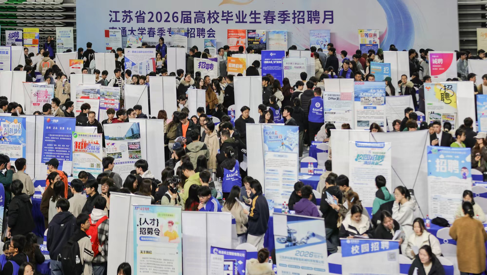 本次活动由江苏省人力资源和社会保障厅、江苏省总工会主办,mg冰球突破试玩、南通市总工会、南通市人力资源和社会保障局、江苏省职工服务中心、江苏省职业介绍中心、江苏省高校招生就业指导服务中心承办,南通市人力资源服务中心、南通市职工服务中心、南通市崇川区总工会协办。mg冰球官网2026届毕业生参加活动。