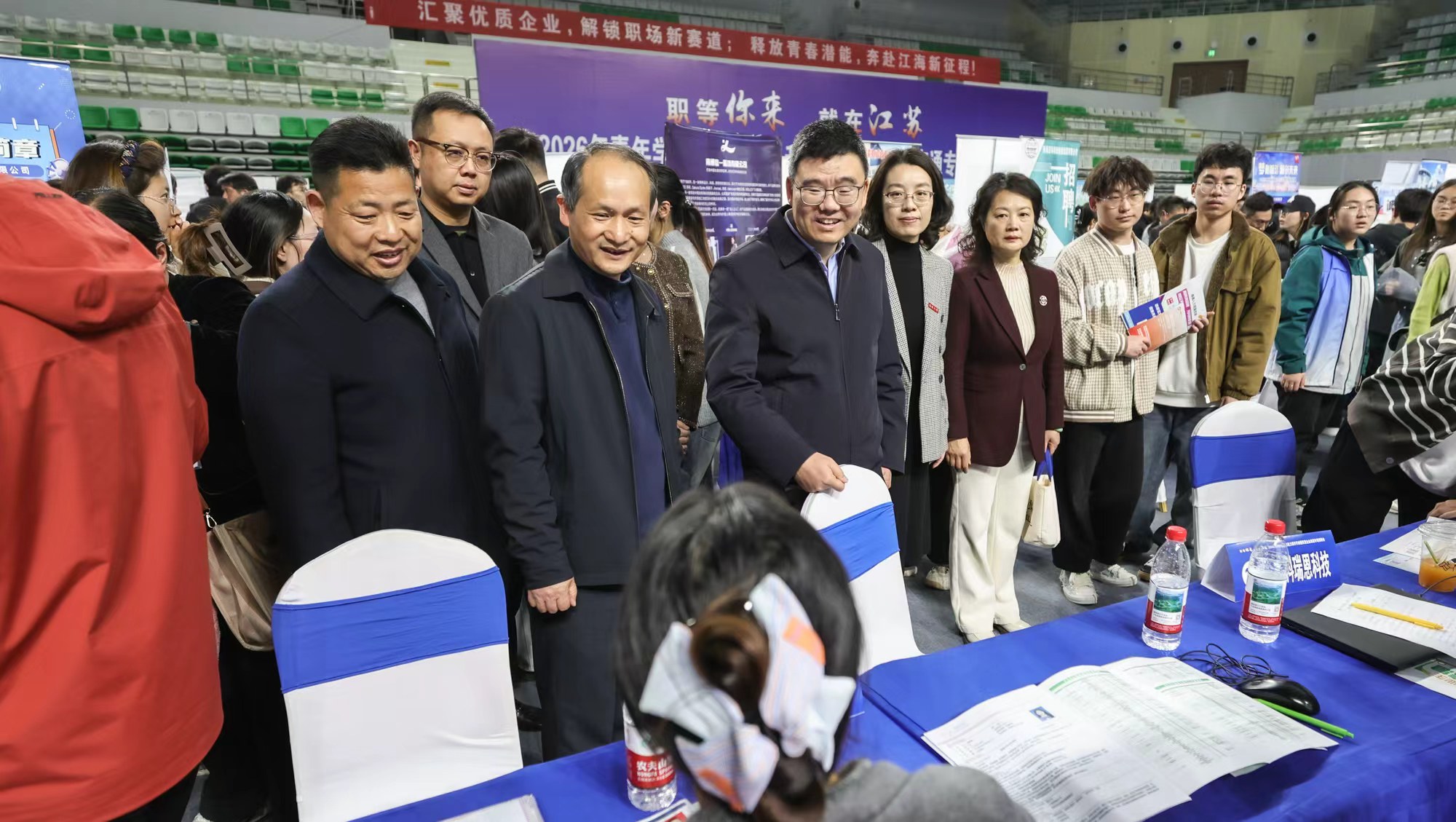 3月27日—28日,“职引新动能 联动助启航”江苏省2026届高校毕业生春季招聘月mg冰球突破试玩春季专场招聘系列活动在mg冰球官网举办。江苏省总工会副主席、党组成员臧铁柱、南通市人大常委会副主任、市总工会主席王少勇,校长王建浦、校党委常委、副校长吉明明参加活动。