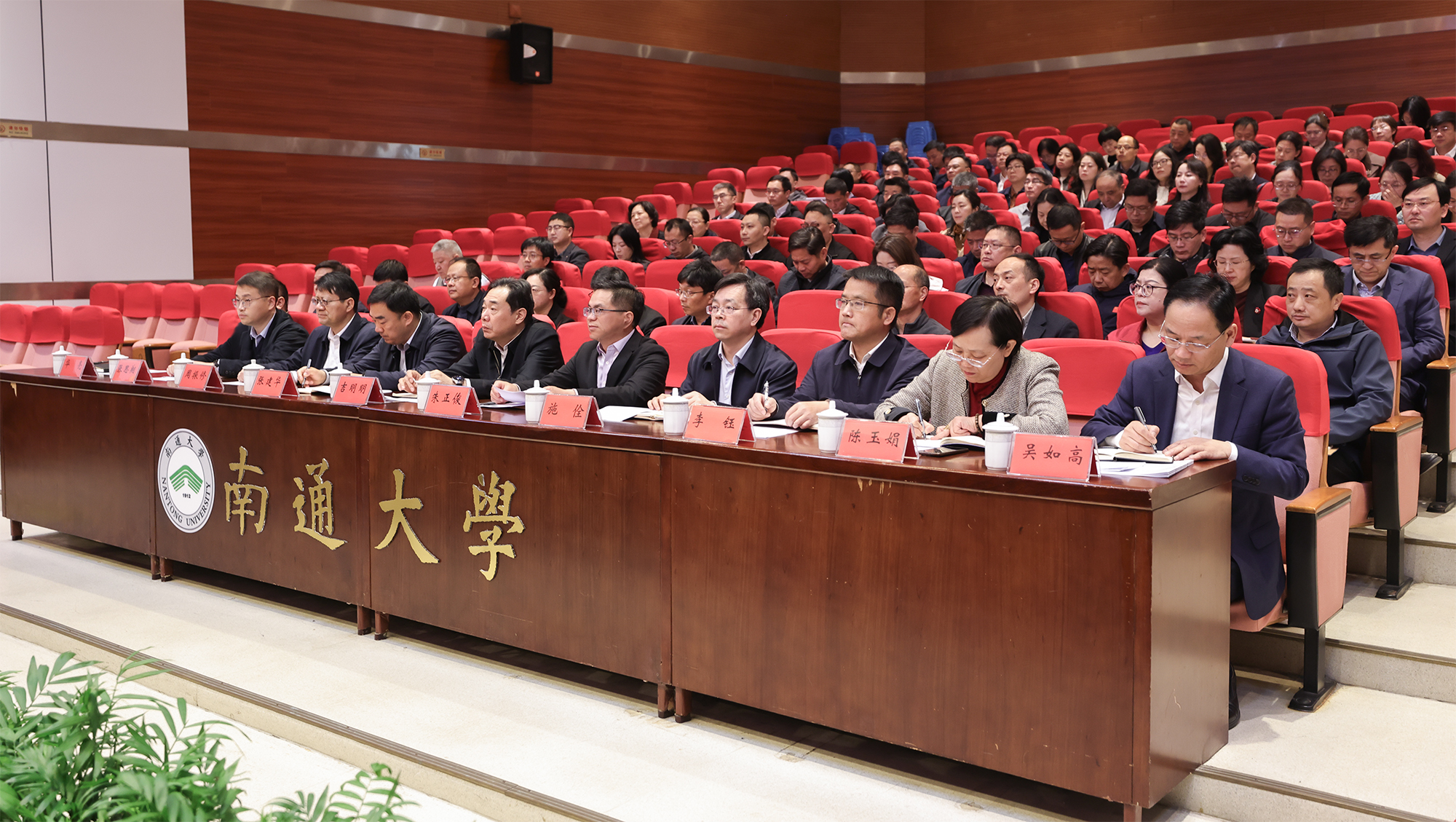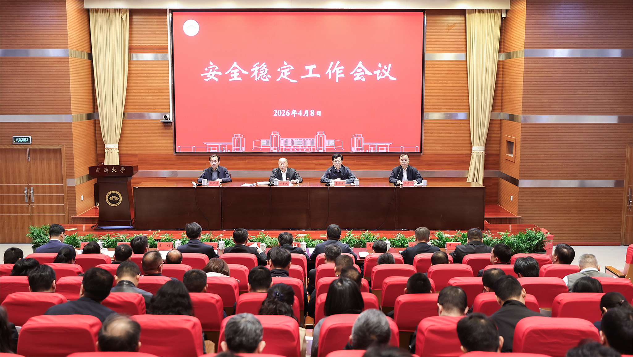 4月8日上午,mg冰球官网召开2026年上半年安全稳定工作会议。校党委书记杨宇民、南通市委政法委常务副书记李学义出席会议并讲话。校党委副书记王卫东通报学校安全稳定工作情况。校党委常委、副校长陆俊杰主持会议。南通市委政法委副书记朱正俊及全体在通校领导、党委常委出席会议。