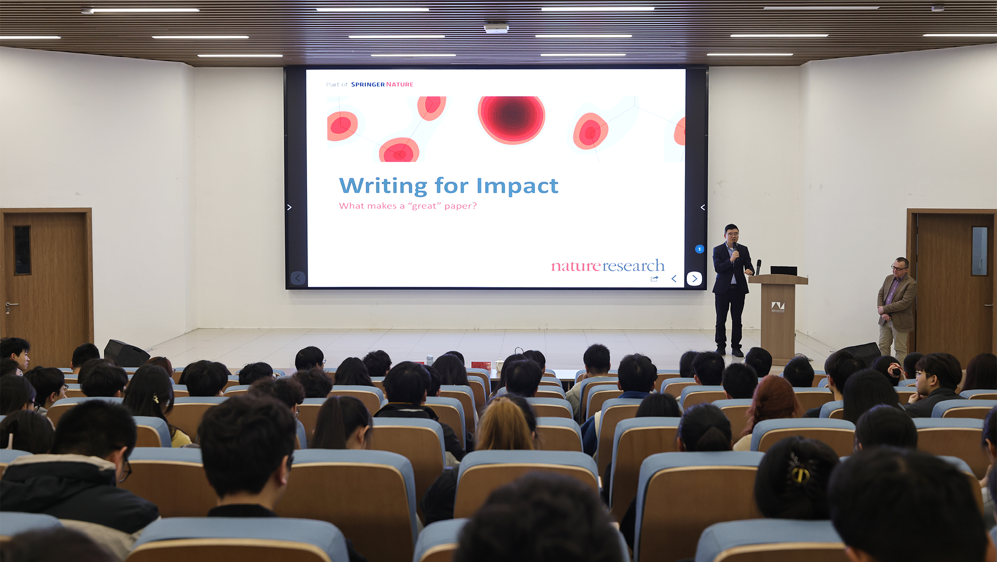 齐梅利斯主编毕业于英国剑桥大学,长期深耕学术出版与科研成果评审领域,统筹天文学、物理学、材料科学、化学、地球与环境科学等领域原创研究论文的发表、评审与质量把控,深度参与量子通信、室温超导、AI材料发现等多项里程碑式科学突破成果的发表评审工作。他在题为“Writing for Impact”的专题学术报告中,立足《自然》期刊编辑视角,围绕高水平学术论文撰写与影响力提升展开深入分享,系统阐释优秀学术论文的核心特质,剖析论文创作中的关键要点与常见误区,传授提升学术成果传播力与影响力的实用方法,为在场师生带来兼具专业性与指导性的学术分享。